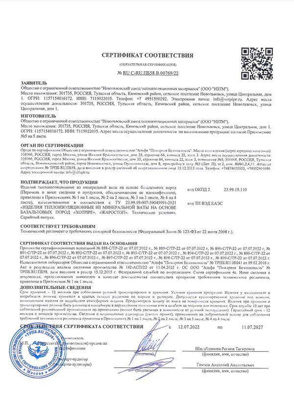 Используется для теплоизоляции охладительных установок острого пара свыше 350 °C. Для теплоизоляции клапанов и задвижек трубопроводов ТЭС, а так же для теплоизоляции печного оборудования.